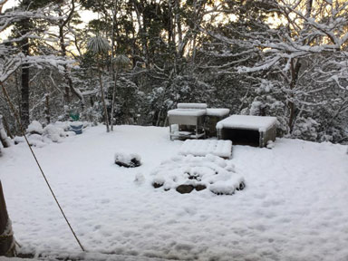 ひもろぎ苑に入りました。下界では雪はなくなっていましたが、
