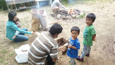 次におこなったのが、飯盒炊飯を考えてみるということをやってみました。キャンプを指導するときに、お米の量や準備について、かまどの設置、火の起こし方や火の維持の仕方など、結構今まで当たり前のようにやってきた事が、実際に3家族でやってみるとそれぞれ違っていることに気づき、再度確認し最善の仕方に統一することにしました。
